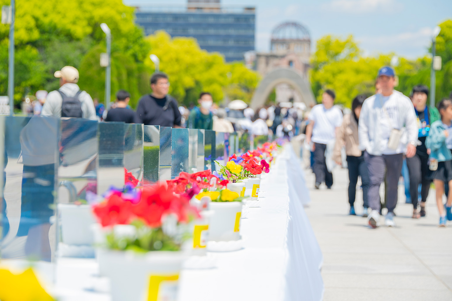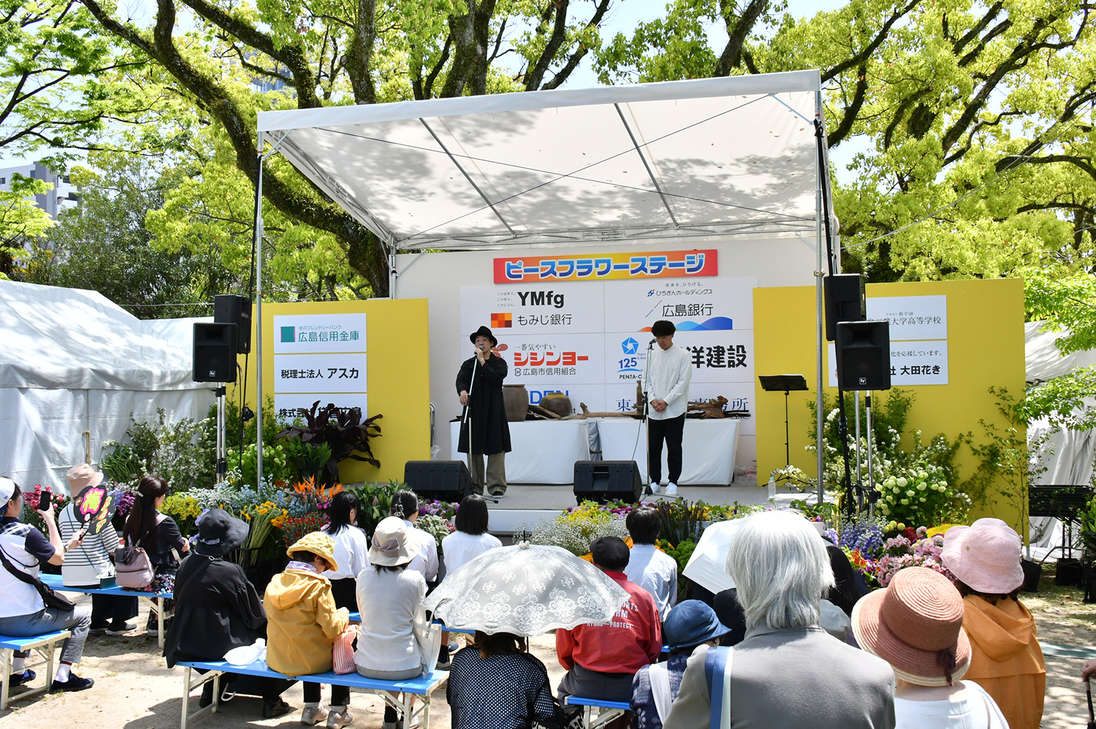 「広島を花であふれる街にしよう!」という信念で2011年に始まった取り組み。例年、広島市内とその近郊の学校や施設など約150団体に花を育てていただき、FF期間中の3日間、平和記念公園に集めて展示します。終了後は県内の各地域へ配布し、大切に育てられています。