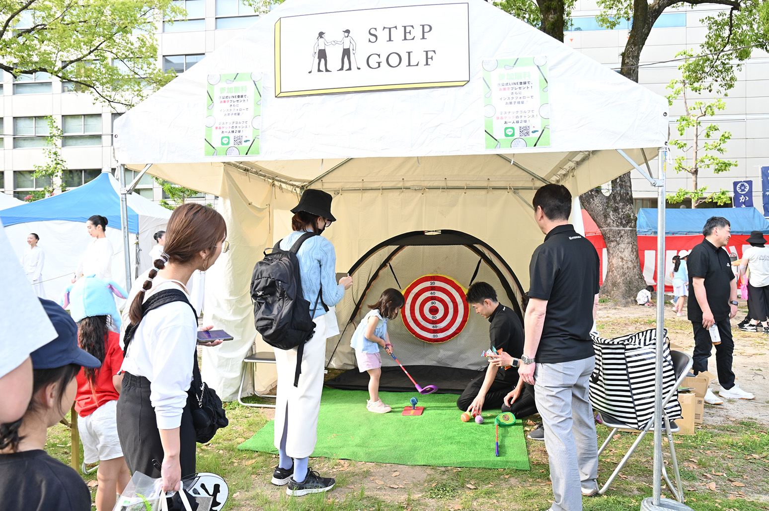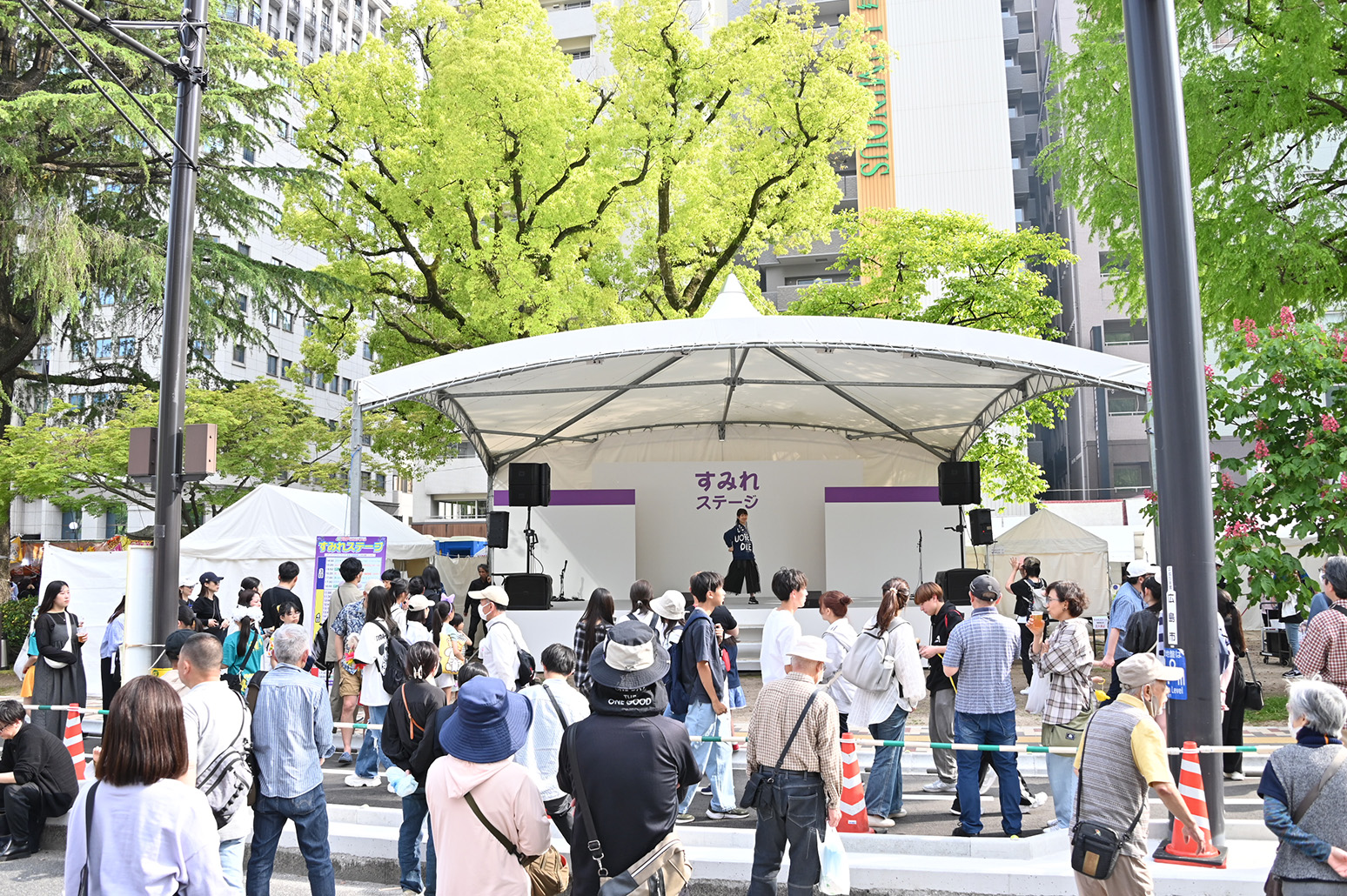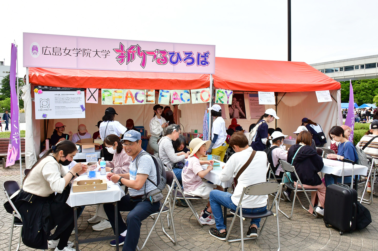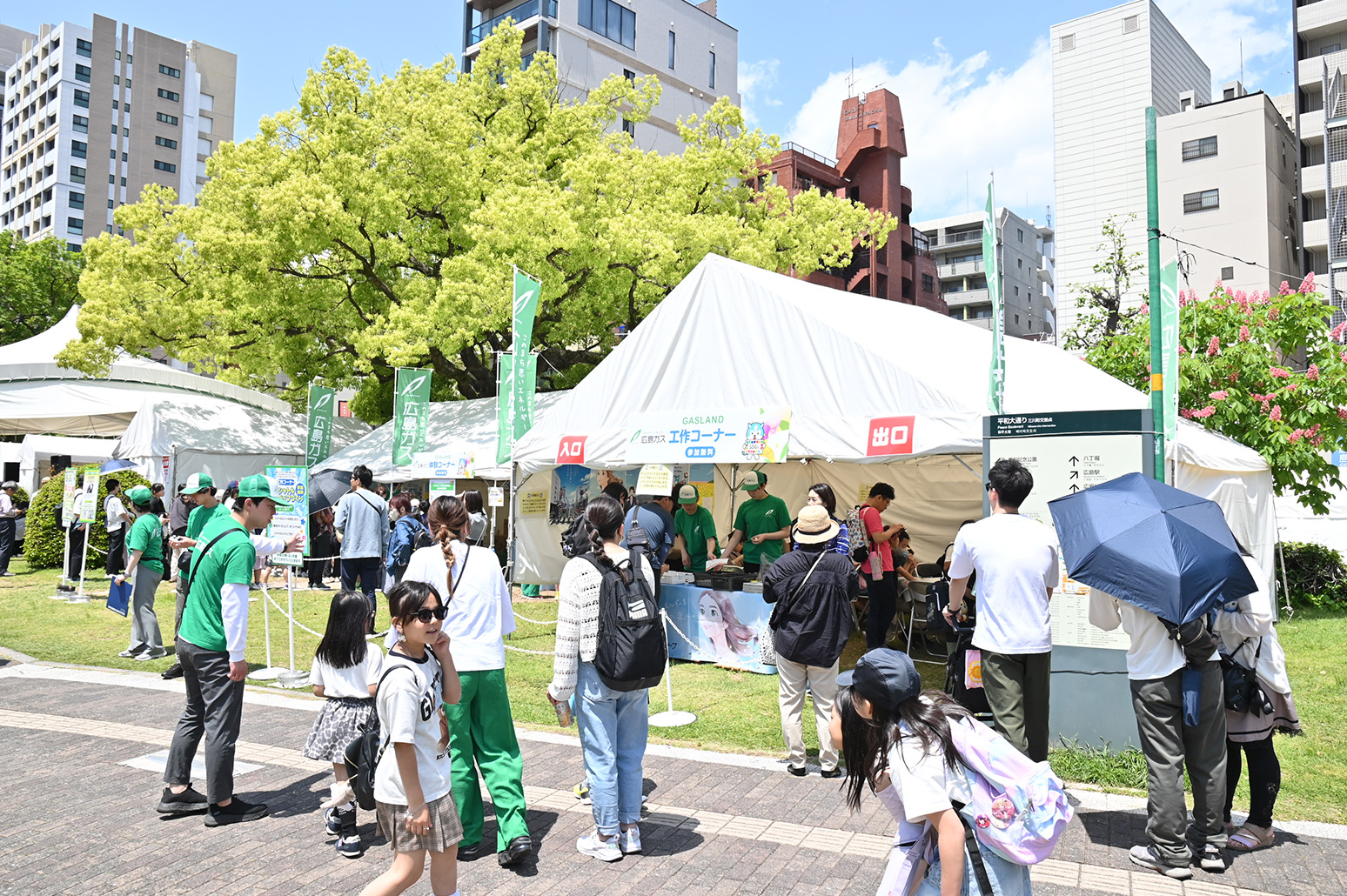 FF期間中の3日間、平和大通りの緑地帯や平和記念公園には毎年約80か所の「ひろば(ブース)」が構築されます。